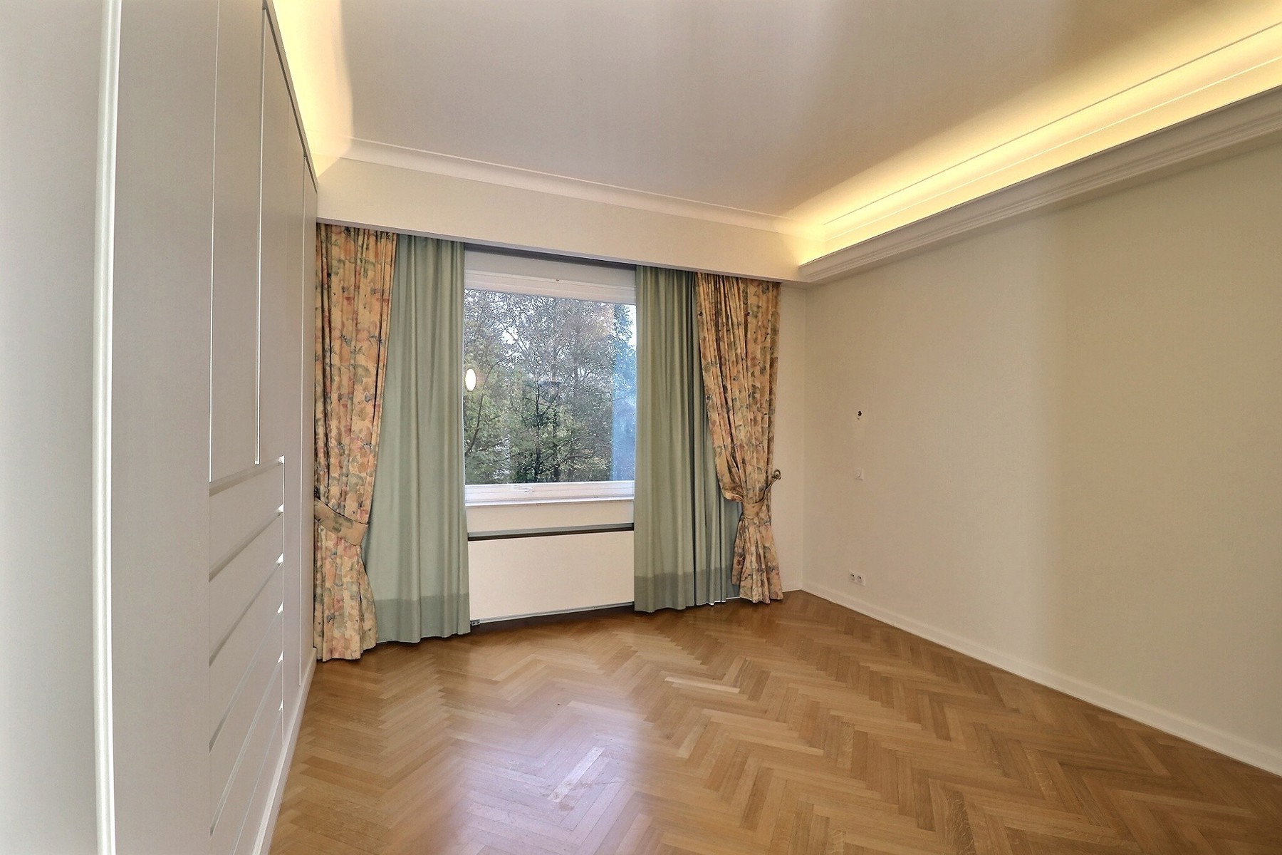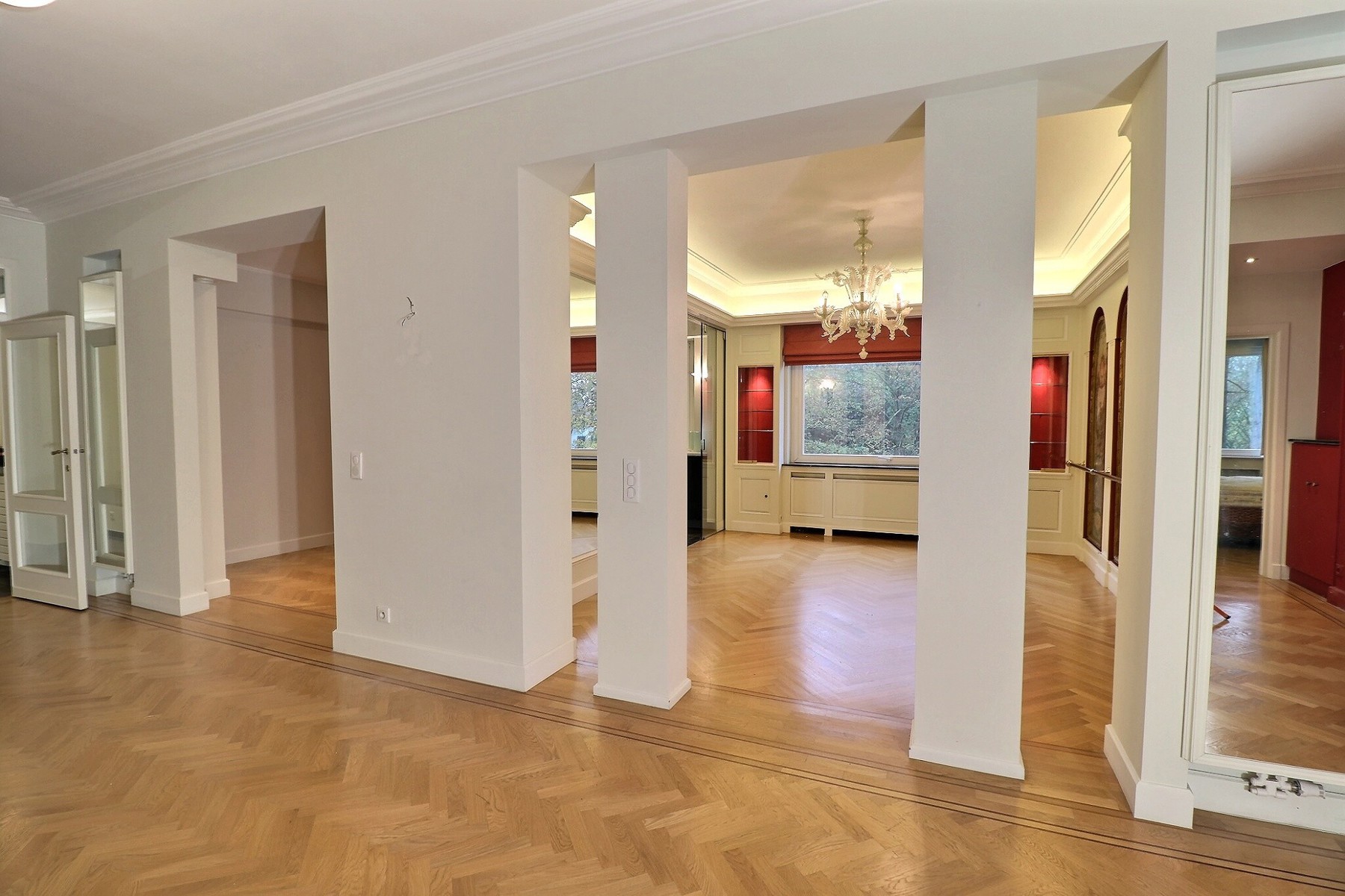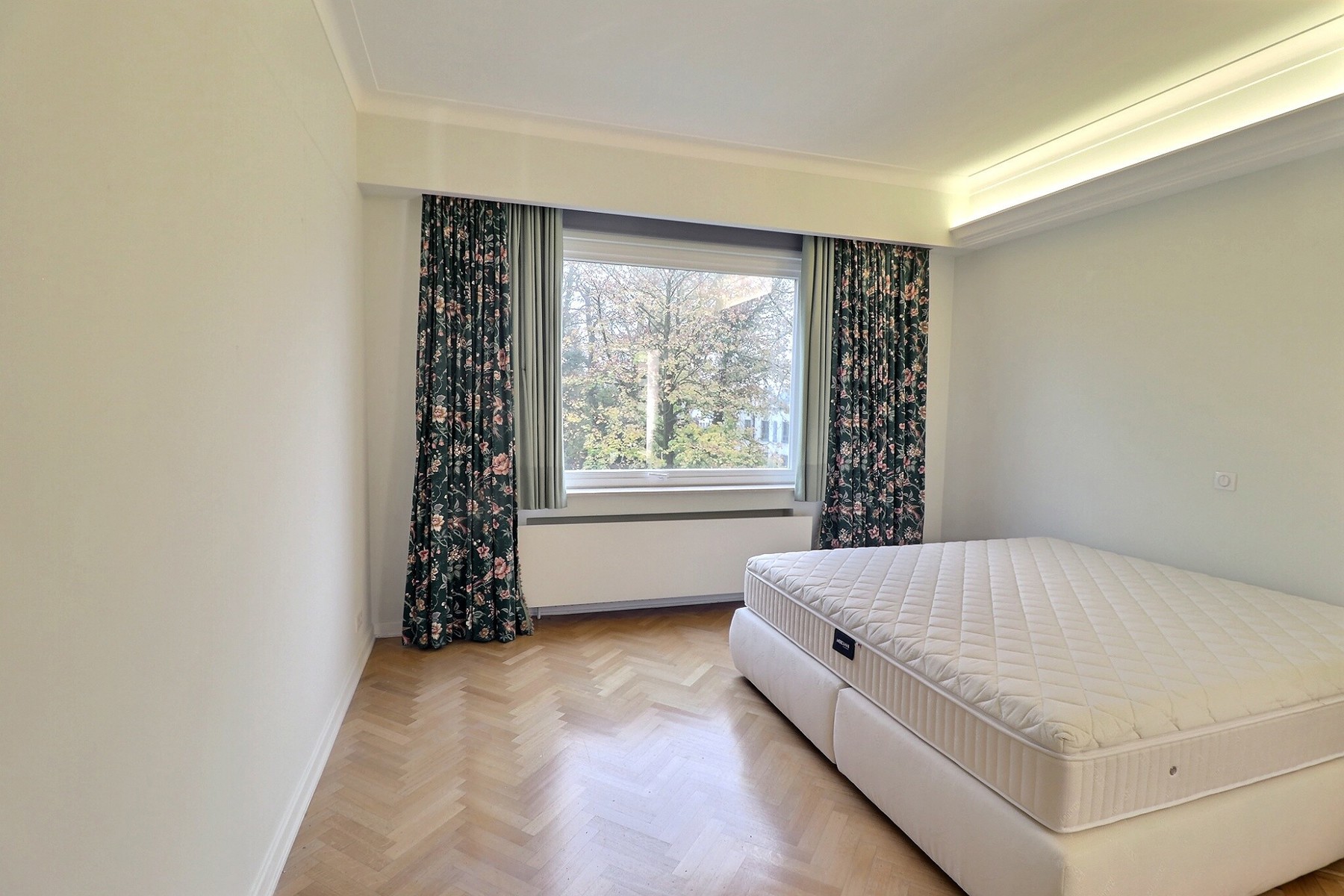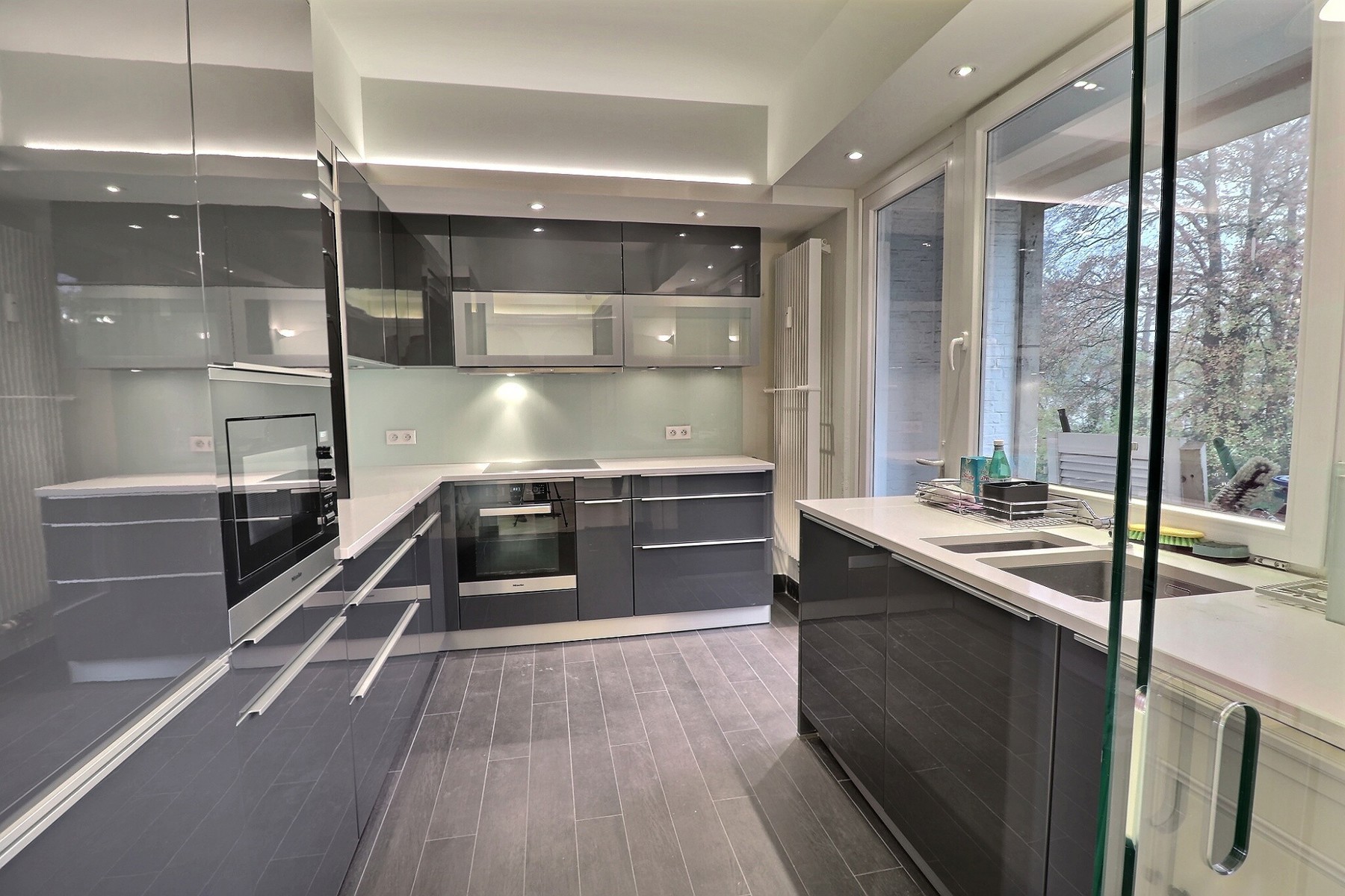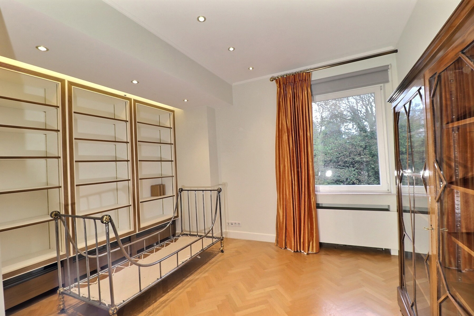 Dans un environnement verdoyant et paisible, à proximité immédiate du Bois de la Cambre, découvrez cet élégant appartement d’une superficie brute de plus de 200 m², alliant espace, lumière et raffinement. Dès l’entrée, un vaste hall avec vestiaire et toilettes invités vous accueille et mène vers de superbes pièces de vie : une cuisine hyper-équipée avec accès à la terrasse, une salle à manger conviviale et un lumineux salon agrémenté d’un feu ouvert au gaz. Une seconde terrasse, exposée plein sud, offre une vue panoramique et dégagée sur le parc environnant. Pour compléter l’espace jour, un bureau idéal pour le télétravail ainsi qu’un salon TV confortable viennent parfaire cet ensemble.